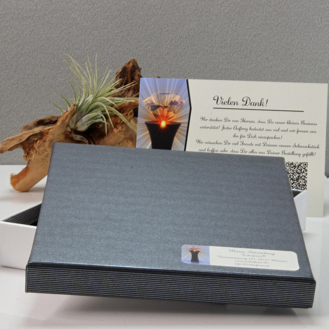 Bei Unsicherheiten bezüglich Länge oder Verschluss können wir häufig auch nachträglich noch Änderungen vornehmen. Kontaktiere uns einfach. Oder verschenke einen Erdenfeuer Gutschein, wenn du nicht sicher bist, welche Kette die Richtige ist.
