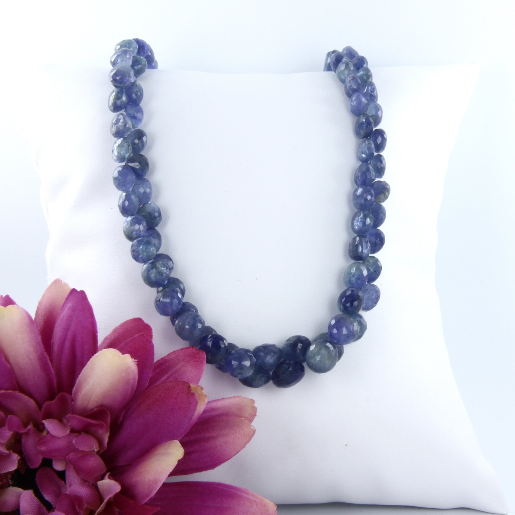 Taubenblaue Iolith-Kette im Onionschliff - Zwiebelschliff